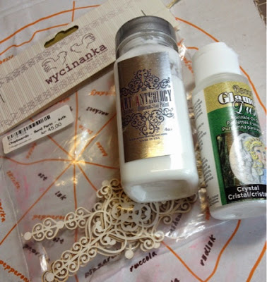 On the pinecone it self I used the resistpatteren with walnut stain, and the resist gave it a life of its own.. For the craft (only) side I used Frayed Burlap and Vintage photo with frosted embossingpowder on.